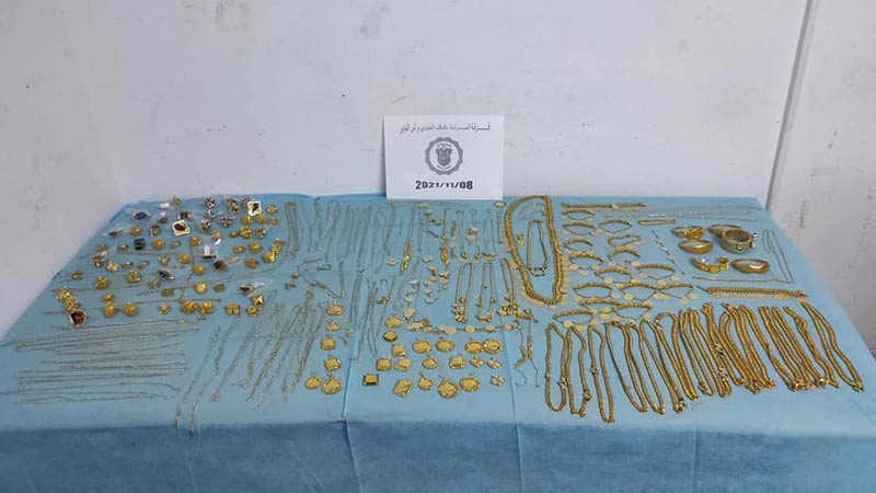 في إطار مكافحة التهريب بالشريط الحدودي بالجنوب الشرقي للبلاد التونسية، تمكنت مصالح الديوانة برأس جدير من إحباط محاولة تهريب كمية من المصوغ من الذهب تزن إجمالا 2127.2 غ إضافة إلى 670 علبة سجائر ، مخفية بإحكام داخل صندوق مهيأ للغرض داخل سيارة ذات ترقيم تونسي يقودها مواطن تونسي الجنسية.