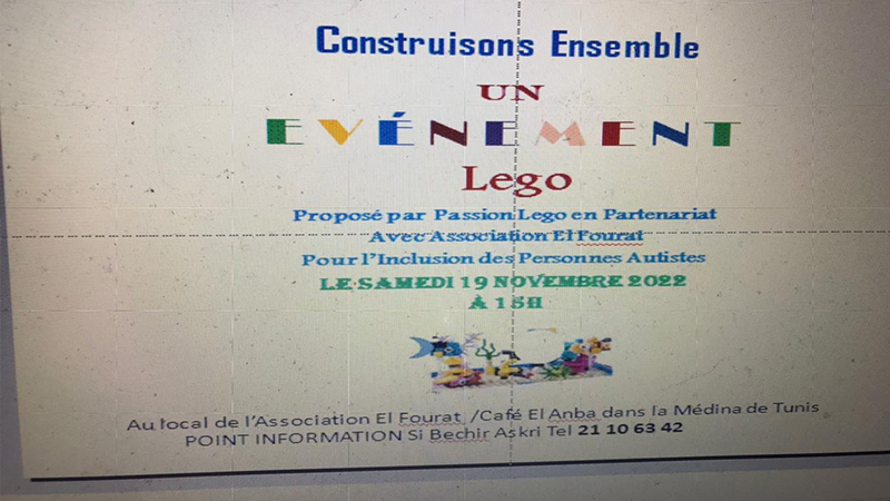 تحت شعار «لنبني معا» تعقد اليوم الجمعية التونسية لأطفال التوحد بالاشتراك مع جمعية «الفرات» و«passion lego» لقاء بمقر جمعية الفرات مقهى العنبة بتونس المدينة حول مزافقة الأطفال ذوي الاحتياجات الخصوصية المصابون بطيف التوحد ومتابعتهم والاحاطة بهم وذلك ابتداء من الساعة الثالثة بعد الزوال.