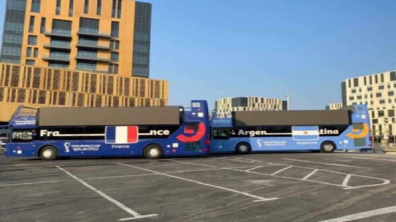 ويلتقي منتخبا فرنسا والأرجنتين، مساء اليوم على ستاد لوسيل، ضمن منافسات نهائي كأس العالم "قطر 2022". وأحضرت اللجنة المنظمة، حافلتين مكشوفتين أمام بوابات ملعب لوسيل، كل منهما تحمل ألوان علم دولة من طرفي النهائي (فرنسا والأرجنتين).