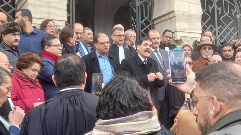 نفّذ محامون وممثلون عن منظمات وأحزاب، اليوم الثلاثاء، وقفة احتجاجية أمام المحكمة الابتدائية بتونس، تضامنا مع الحقوقي العياشي الهمامي، منسّق هيئة الدفاع عن القضاة المعزولين، الذي يمثل أمام قاضي التحقيق إثر شكاية تقدّمت بها وزيرة العدل.
