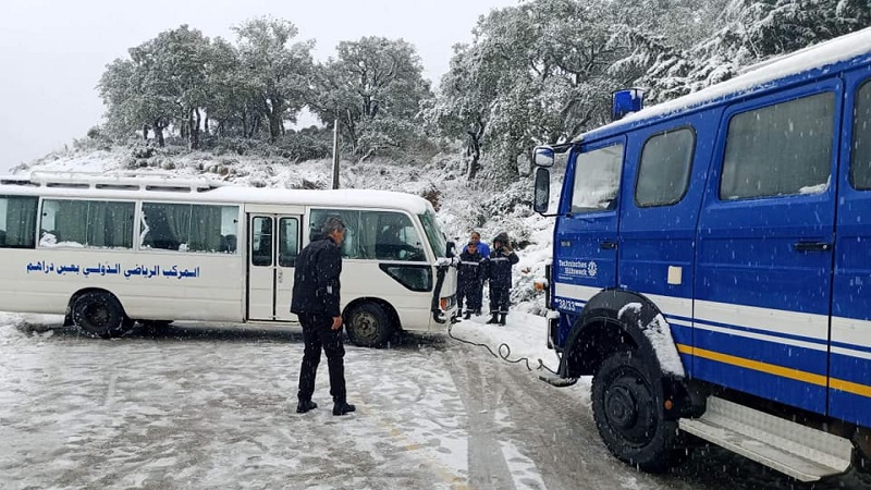 بسبب الثلوج.. انزلاق حافلة و'لواج " في عين دراهم