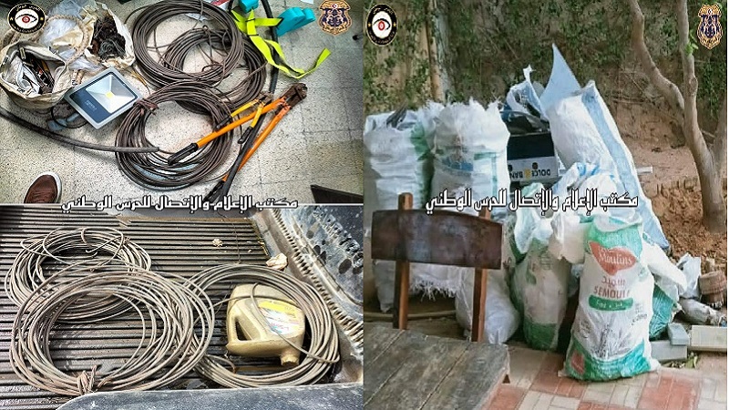 قال المتحدث باسم الادارة العامة للحرس الوطني ان فرقة الأبحاث والتفتيش بزغوان تمكنت اول امس الثلاثاء من تفكيك شبكة مختصة في سرقة الأسلاك النحاسية والاحتفاظ بثلاثة من عناصرها وحجز حوالي 100 متر من الأسلاك النحاسية ، كما تمكنت نفس الوحدة يوم امس من القبض على أحد العناصر الضالعة في عمليات السرقة بصدد قطع أسلاك كهربائية من أعمدة الكهرباء المركزة بالطريق العمومي والاحتفاظ به تنفيذا لتعليمات النيابة العمومية .