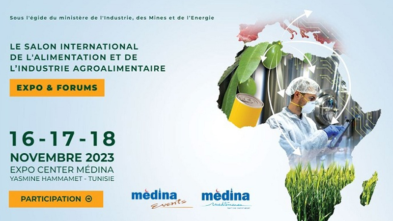 تحتضن مدينة ياسمين الحمامات من 16 إلى 18 نوفمبر الجاري فعاليات الدورة الأولى للصالون الدولي للصناعات الغذائية بمشاركة عدد من الفاعلين الاقتصاديين والمهنيين في قطاع الصناعات الغذائية من تونس ومن 17 دولة عربية وأفريقية وأوروبية وأمريكية.