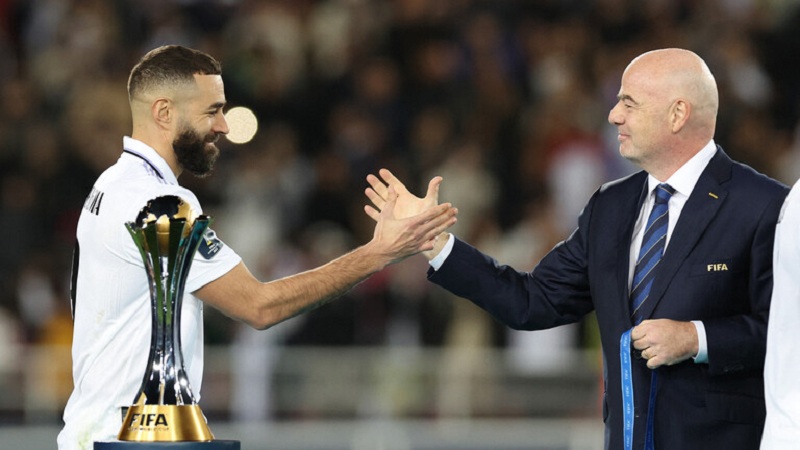 هنأ جياني إنفانتيتو رئيس الاتحاد الدولي لكرة القدم، الفرنسي كريم بنزيما نجم اتحاد جدة السعودي بإنجازه في مونديال الأندية.