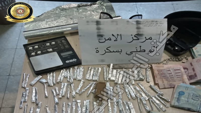 قالت الادارة العامة للامن الوطني في بلاغ لها مساء اليوم الاحد انه على إثر توفّر معلومات لدى الوحدات الأمنية التابعة لمركز الأمن الوطني بسكرة مفادها تحوّز أحد الأشخاص على كمّية من المواد المخدرة بغاية ترويجها بالجهة.