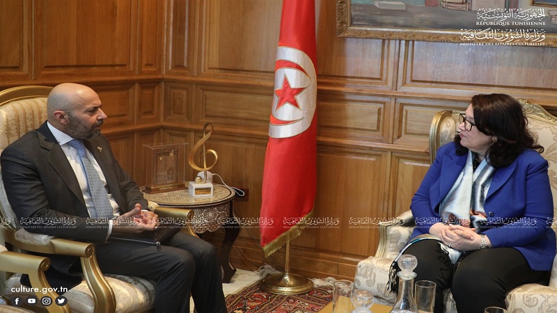 استقبلت وزيرة الشؤون الثقافية حياة قطاط القرمازي اليوم الاربعاء 7 فيفري 2024 سفير دولة الكويت بتونس منصور خالد العمر، وكان ذلك بحضور المدير العام للمعهد الوطني للتراث والمديرة العامة للمركز الوطني لفن العرائس ومديرة مركز الموسيقى العربية والمتوسطية النجمة الزهراء بسيدي بوسعيد.