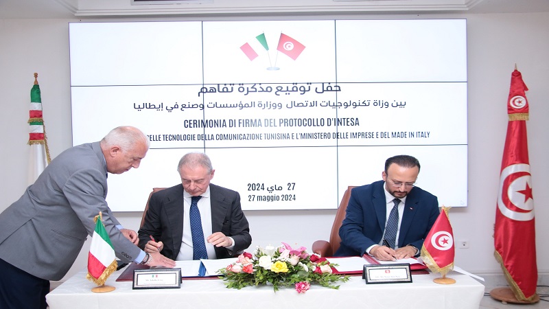 وتولى التوقيع على هذه المذكرة، التي تندرج في إطار دعم التعاون التونسي الإيطالي في المجالات الرقمية والتكنولوجية والصناعية، وزير تكنولوجيات الاتصال، نزار بن ناجي، ووزير الشركات والصناعة الإيطالية، أدولفو أورسو، بحضور سفير إيطاليا بتونس والوفد الإيطالي المرافق وعدد من إطارات الوزارة.