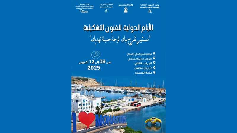 تنطلق الدورة الثالثة للأيام الدولية للفنون التشكيلية بالمنستير يوم 9 أكتوبر بمشاركة 32 رساما من داخل وخارج تونس سيتجولون بين عدة فضاءات بالمدينة وسيتركون إبداعاتهم الفنية من خلال رسم جداريات. ستمتد التظاهرة على أربعة أيام تحت شعار "مستير تفرح بيك لوحة جميلة تهديك"،خصص اليوم الأول ...