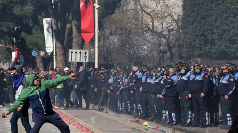 ووقعت صدام بين آلاف من أنصار المعارضة والشرطة في العاصمة تيرانا، خلال تظاهرة مناهضة للحكومة، طالب المحتجون فيها باستقالة رئيس الوزراء إيدي راما، الذي يتهمه خصومه بالفساد.