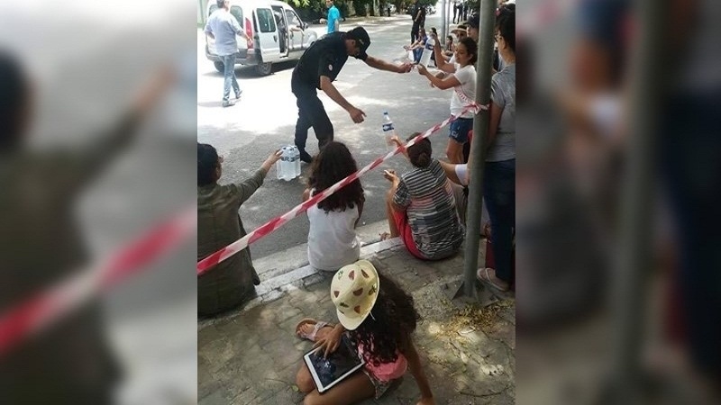 صورة أمنيين يوزعون الماء على المواطنين في جنازة السبسي تثير اعجاب رواد الفايسبوك