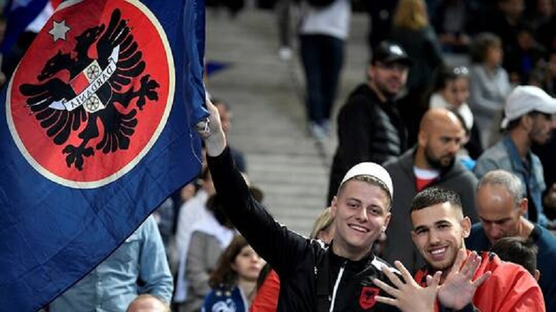 وأطلقت الجماهير الألبانية المتواجدة في المدرجات صافرات الاستهجان لدى عزف النشيد، قبل أن يتم عزف النشيد الصحيح وسط تصفيق من مشجعي المنتخبين، لتنطلق المباراة بعد تأخير نحو خمس دقائق.