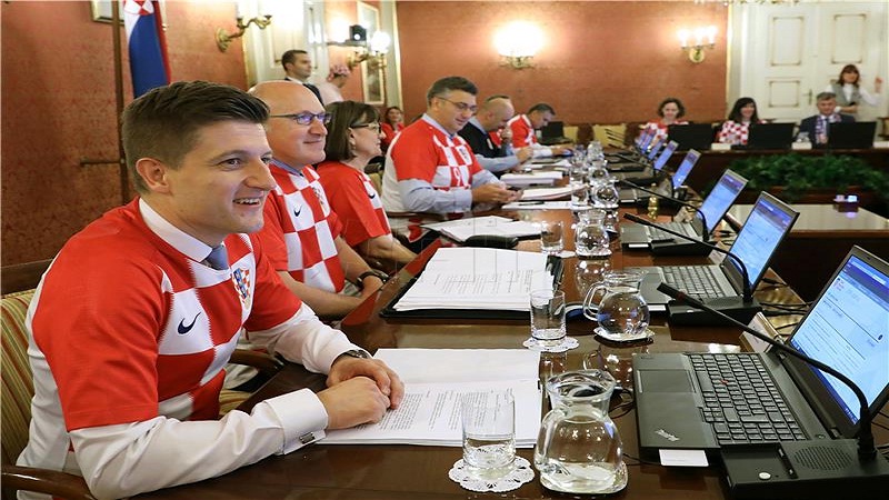 حكومة كرواتيا تعقد اجتماعا بزي المنتخب احتفالا بوصله لنهائي المونديال