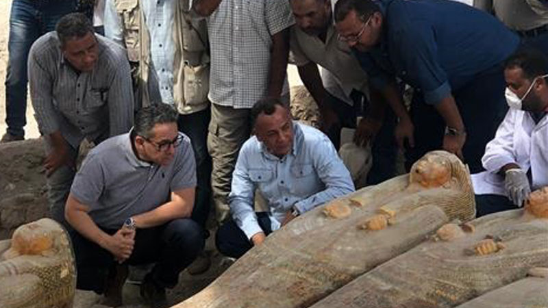 أعلنت وزارة الآثار المصرية عثورها على أضخم وأهم الاكتشافات التي تم الإعلان عنها خلال الأعوام القليلة الماضية، حيث يضم أكثر من 20 تابوتًا خشبيًا آدميًا ملونًا، في حالة متميزة من الحفظ والألوان والنقوش كاملة ولا تزال مغلقة. وقال وزير الآثار المصري خالد العناني إنهم "وجدوا الكشف الأثري بالوضع الذي تركه ...