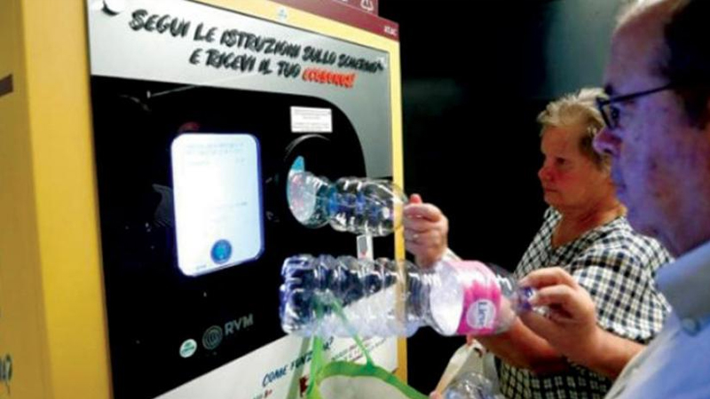 في روما، يمكن لمستخدمي وسائل النقل العام حالياً، استبدال الزجاجات البلاستيكية القديمة والحصول على تذاكر المترو والحافلات بدلا منها. حيث يقوم الراكب بسهولة بوضع الزجاجة البلاستيكية في ماكينة البيع التي تقوم بتحميل ثمن التذكرة على الهواتف الذكية، من خلال تطبيق إلكتروني.