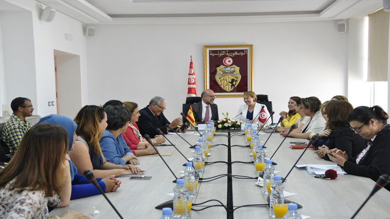 أشرفت وزيرة المرأة والأسرة والطفولة وكبار السن نزيهة العبيدي، ، صباح اليوم الثلاثاء 17 جويلية 2018 بمقر الوزارة، على موكب إمضاء اتفاقية هبة مع الوكالة الإسبانية للتعاون الدولي من أجل التنمية، ممثلة في شخص السيد خوان لوباز دوريقا، سفير المملكة الإسبانية بتونس. وتتنزل هذه الهبة، والتي تقدر قيمتها بـــ200 ألف أورو، في إطار دعم الجهود الوطنية في مجال تنفيذ الاستراتيجية الوطنية للتمكين الاقتصادي والاجتماعي للنساء والفتيات في الوسط الريفي (2017-2020). وأبرزت الوزيرة بالمناسبة حرص بلادنا على دعم علاقات التعاون بين تونس وإسبانيا، مشيرة إلى أنّ هذه الاتفاقية من شأنها أن تفتح آفاقا جديدة للتعاون بين الطرفين خاصة في مجال تعزيز دور المرأة في المجتمع كأولوية للتنمية بشكل عام والتنمية الريفية على وجه الخصوص. وتهدف هذه الاتفاقية إلى تعزيز قدرات الفاعلين في الشأن التنموي من أجل ضمان الحماية للنساء والفتيات في المناطق الريفية وتعزيز حقوقهنّ الاجتماعية والاقتصادية والثقافية والسياسية، إلى جانب تبني مقاربة مبتكرة وشاملة تأخذ بعين الاعتبار خصوصيات كل جهة بهدف تكريس مبدأ تكافؤ الفرص والقضاء على جميع أشكال التهميش.
